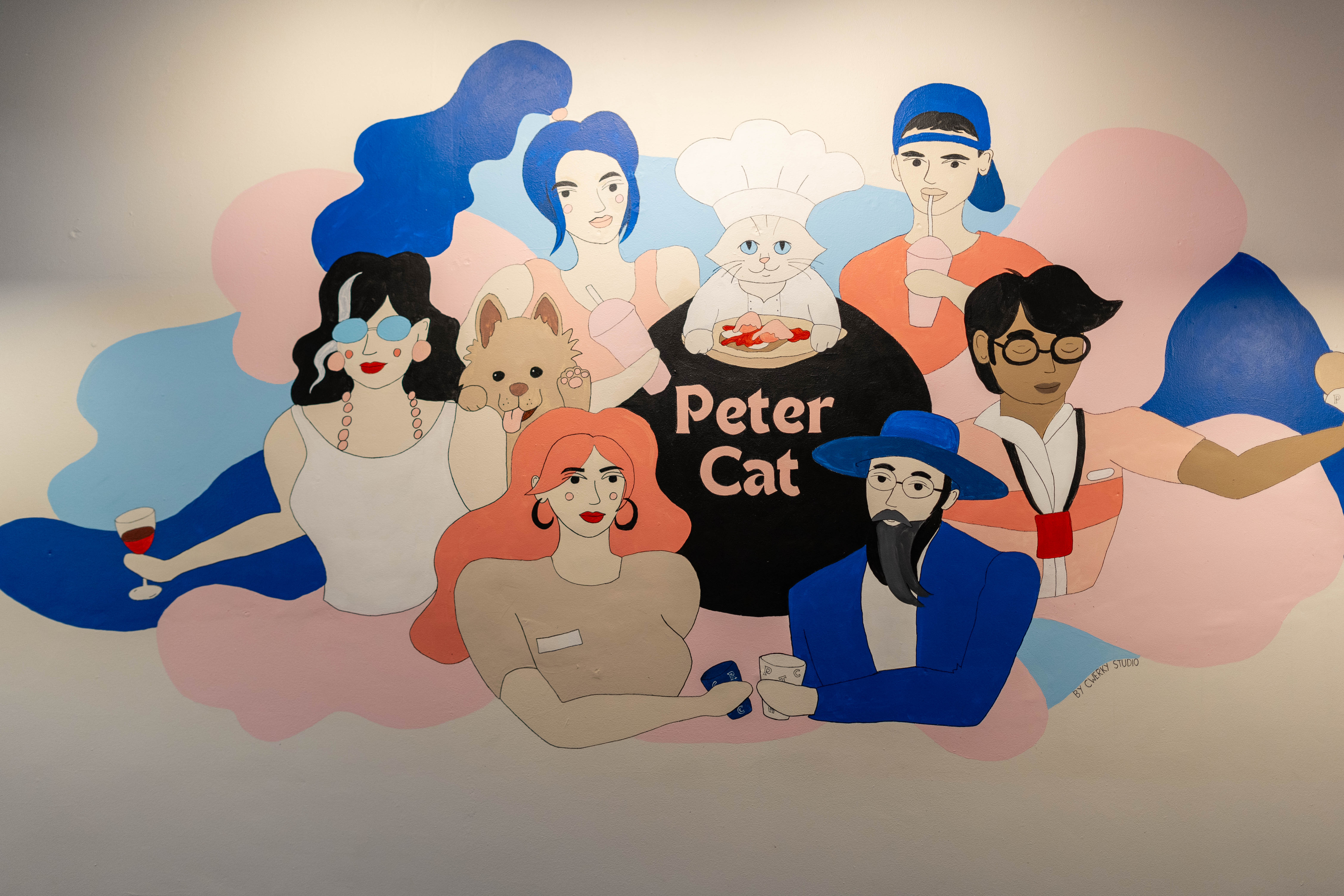 To strengthen its role as a neighbourhood hub, we introduced a cast of illustrated personas inspired by local regulars, celebrating the community and making the space feel welcoming to everyone. Every touchpoint, from the mural to the packaging and digital presence, was crafted to help customers feel at home and part of the Peter Cat community.