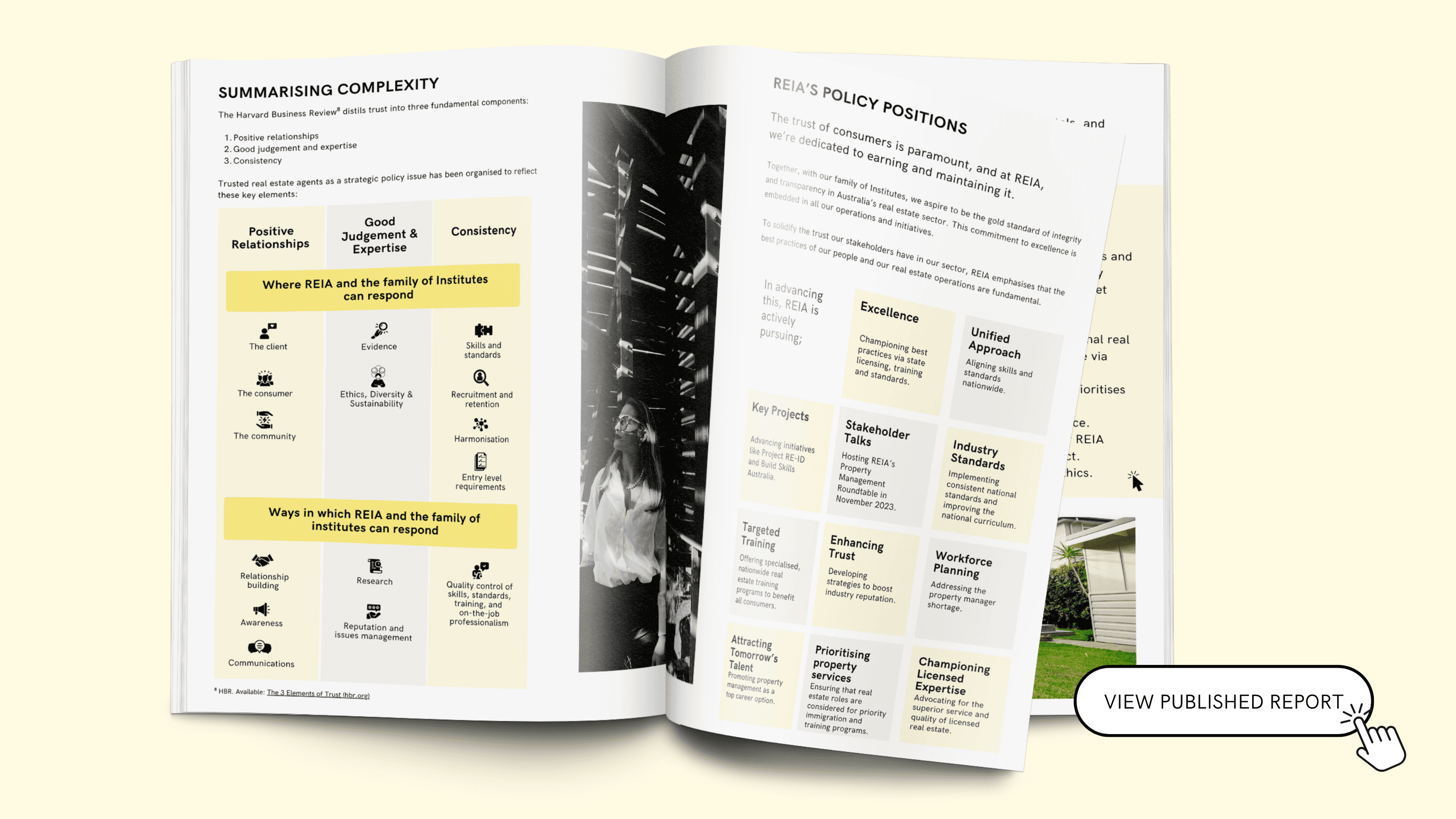 Getting Real is REIA’s strategic policy publication series, developed to articulate the organisation’s position on trust, professionalism, and market integrity within Australia’s real estate sector.